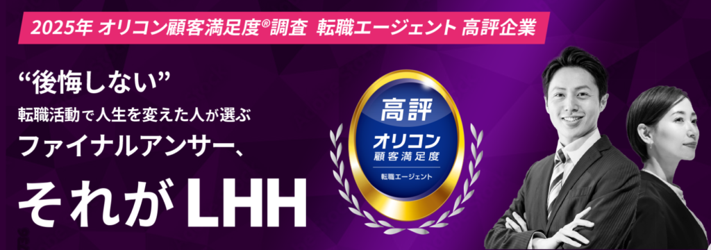 7位はLHH転職エージェントで、老舗のアデコグループの転職エージェントです。JACリクルートメントと同様入キャリアを対象としていますが、女性向けの案件が多く、職種別の担当エージェントがつくという特徴も評価されているようです。キャリアアップを目指したい方にとっては、登録してみると良いエージェントになるでしょう。
