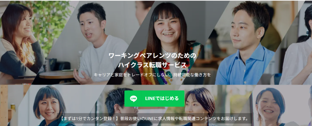 続いてランキングしたのは、ワーキングペアレンツに特化したハイクラス転職サービスのwithworkです。「家庭の時間を大切にしたいけれど、キャリアややりがいをトレードオフにしたくない」というワーママ・ワーパパ向けの支援に力を入れています。エージェントとのやりとりもLINEで、ワーキングペアレンツへの理解も高いという点で、利用率・おすすめ率ともに5位となっています。