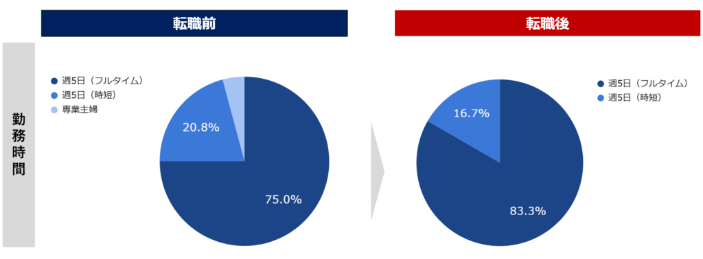 転職内容の傾向を見ていくと、子供が2~3歳で転職したママたちは、時短に切り替える方が増えます。