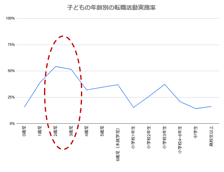 2歳から3歳の子どもを持つワーキングマザーは、転職活動が最も活発になる時期です。これは、職場復帰から1年以上経ち、親子ともに生活リズムや環境が安定し始めることと、仕事と育児の両立で感じるギャップが明確になるタイミングだからだと考えられます。
